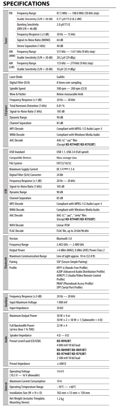 - Τεχνολογία K2 (K2 είναι μια πρωτότυπη τεχνολογία JVC/KENWOOD που αναπαράγει τον αρχικό κύριο ήχο επεκτείνοντας το ρυθμό bit και την περιοχή συχνοτήτων).